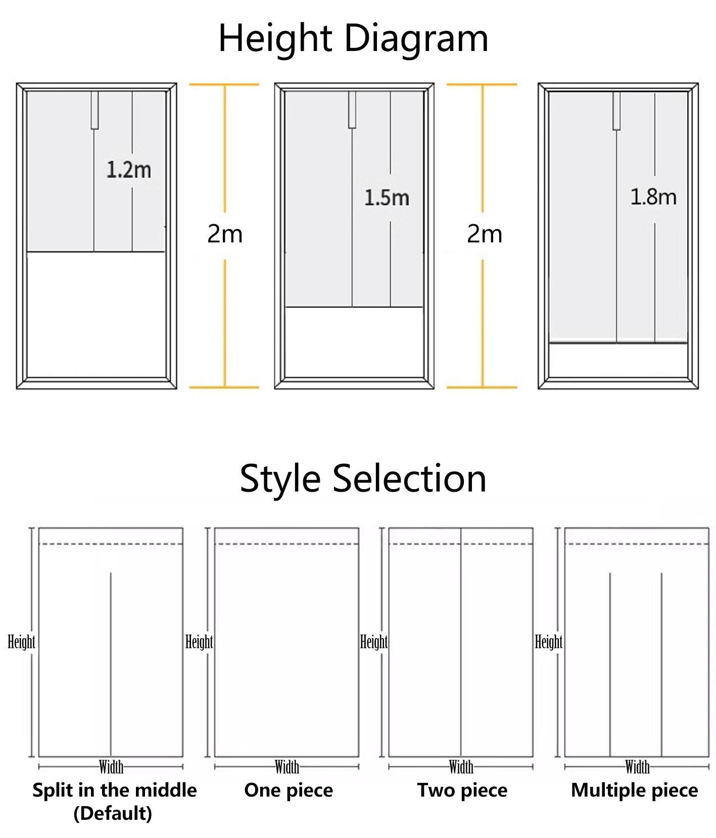 Size: 33.5” W x 59” H (85 x 150 cm). The curtain splits into two halves, allowing easy passage and symbolizing good fortune. We also provide custom sizing and personalized prints—just send us your desired details.