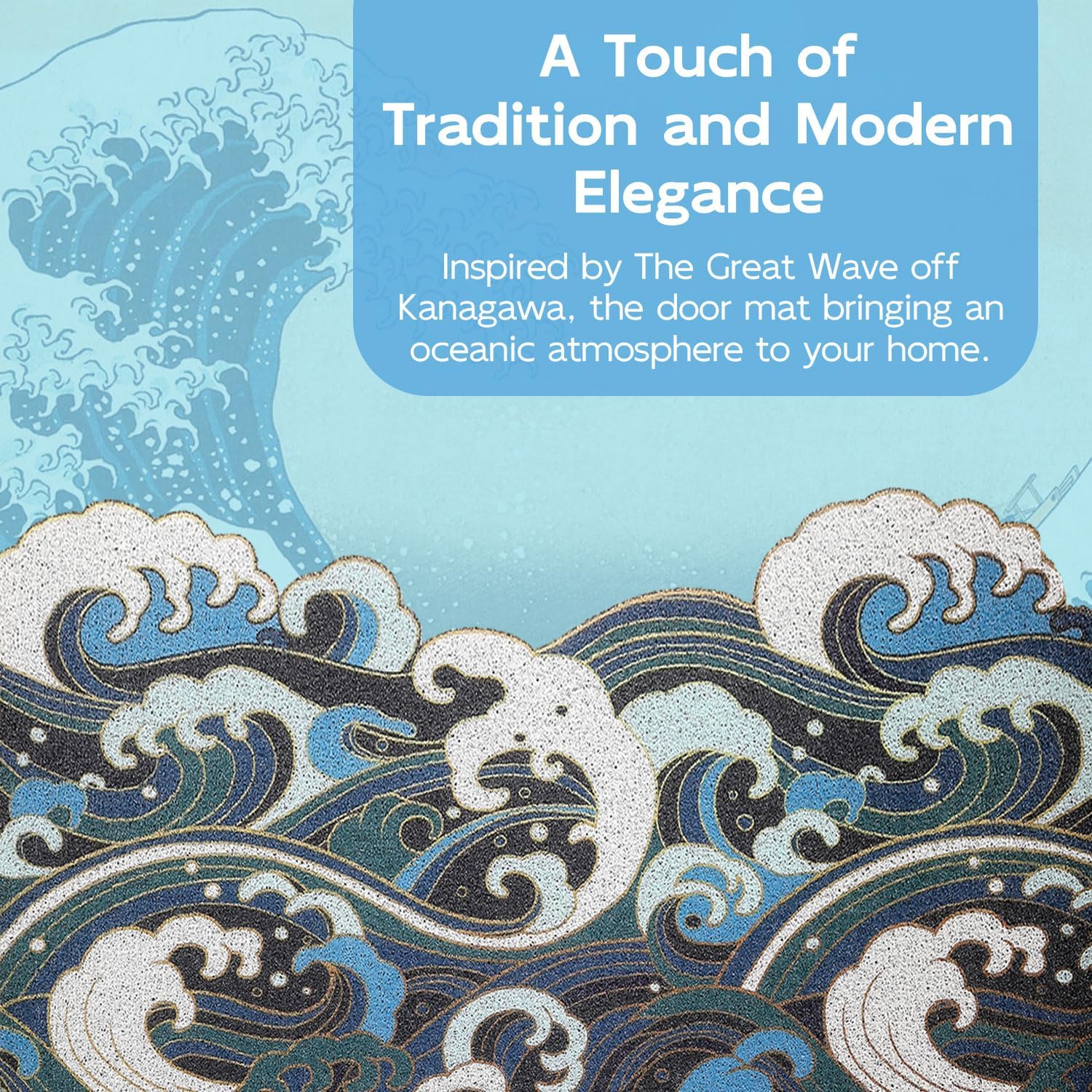 Japanese Style Blue Wave Cutting Entrance Door Mat