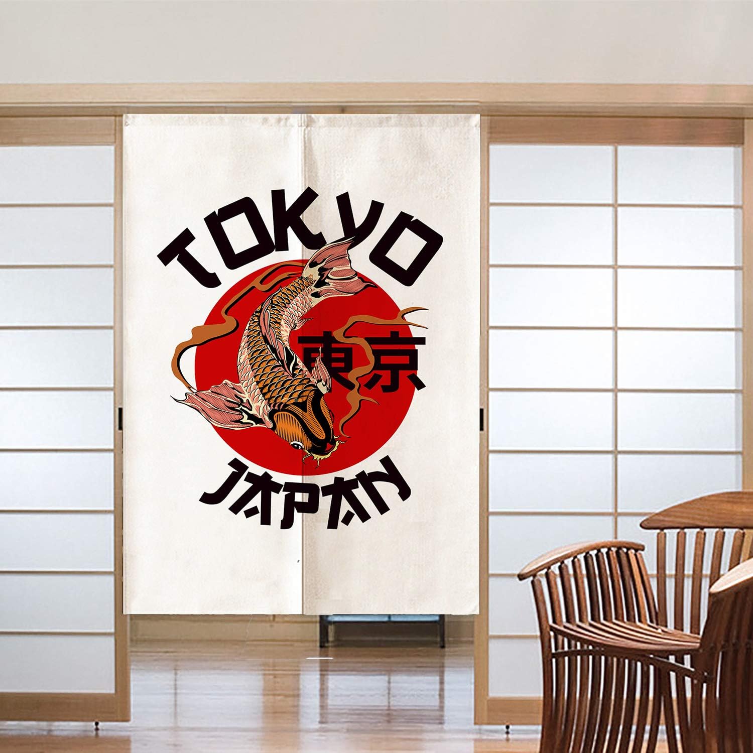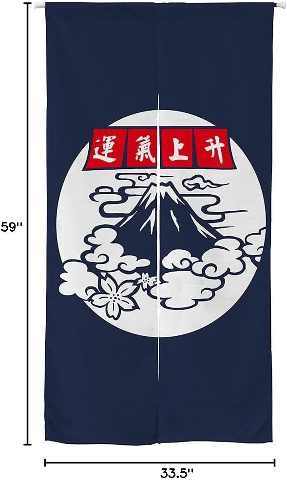 Size: 33.5” W x 59” H (85 x 150 cm). The curtain splits into two halves, allowing easy passage and symbolizing good fortune. We also provide custom sizing and personalized prints—just send us your desired details.